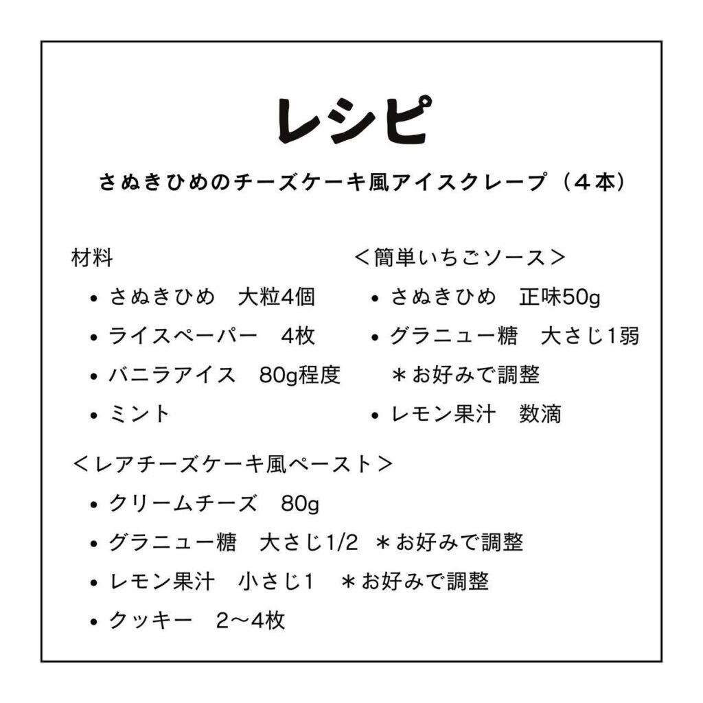 #16【❝さぬきひめ❞のもちもちチーズケーキ風アイスクレープ】いちごスタジオのさぬきひめ